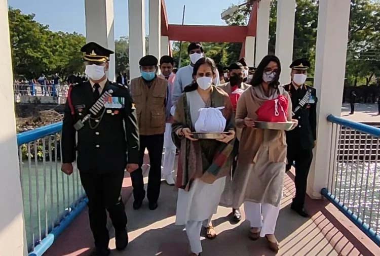बेटियों ने नम आंखों से अस्थियों को नमन किया और गंगा में विसर्जित किया। तीर्थ पुरोहित आदित्य वशिष्ठ की ओर से अस्थियों का विसर्जन कराया गया।