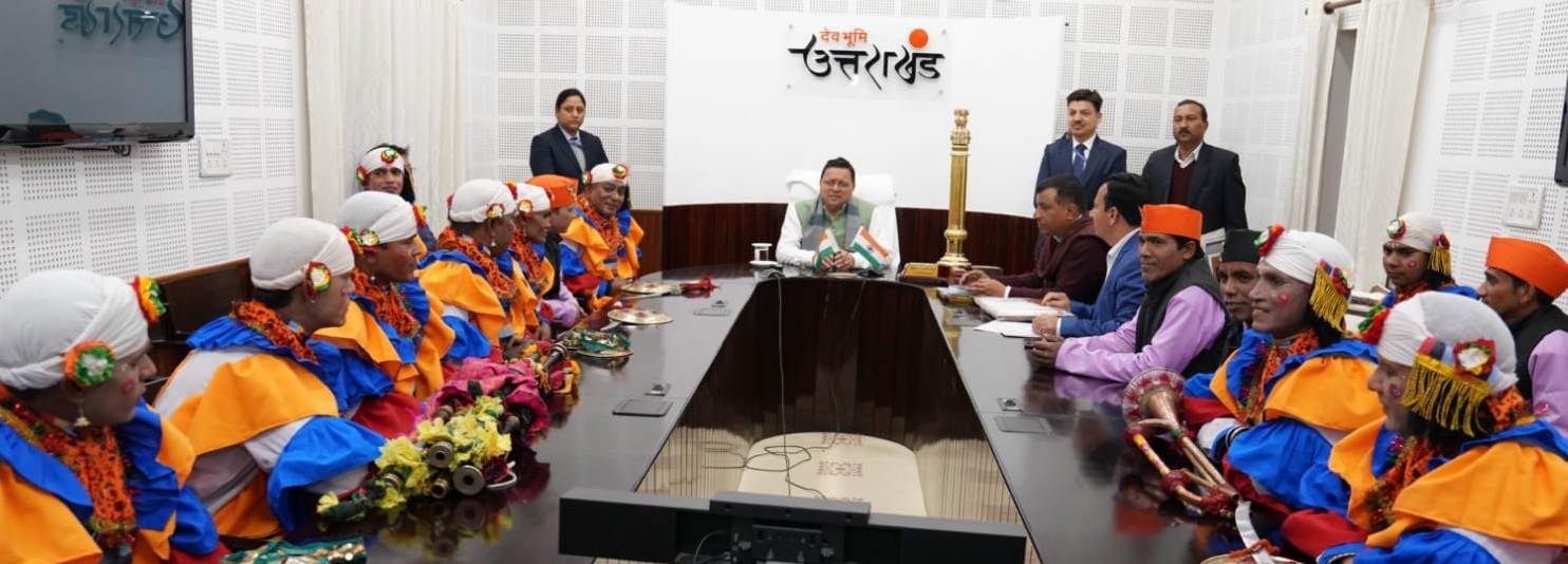 देहरादून। मुख्यमंत्री पुष्कर सिंह धामी से बुधवार को मुख्यमंत्री आवास स्थित मुख्यमंत्री कैम्प कार्यालय में गणतंत्र दिवस पर विभिन्न राज्यों की झांकियों में उत्तराखण्ड की “मानसखण्ड” झांकी को प्रथम स्थान प्राप्त करने के बाद महानिदेशक सूचना श्री बंशीधर तिवारी ने ट्रॉफी के साथ भेंट की। इस अवसर पर झांकी के टीम लीडर संयुक्त निदेशक सूचना श्री के.एस.चैहान के साथ झांकी के कलाकार उपस्थित थे। मुख्यमंत्री ने उत्तराखण्ड को मानसखण्ड झांकी के लिये प्रथम पुरस्कार मिलने पर प्रदेश के लिये सम्मान की बात बतायी। उन्होंने झांकी में शामिल प्रत्येक कलाकार को 50-50 हजार की धनराशि देने की घोषणा की।