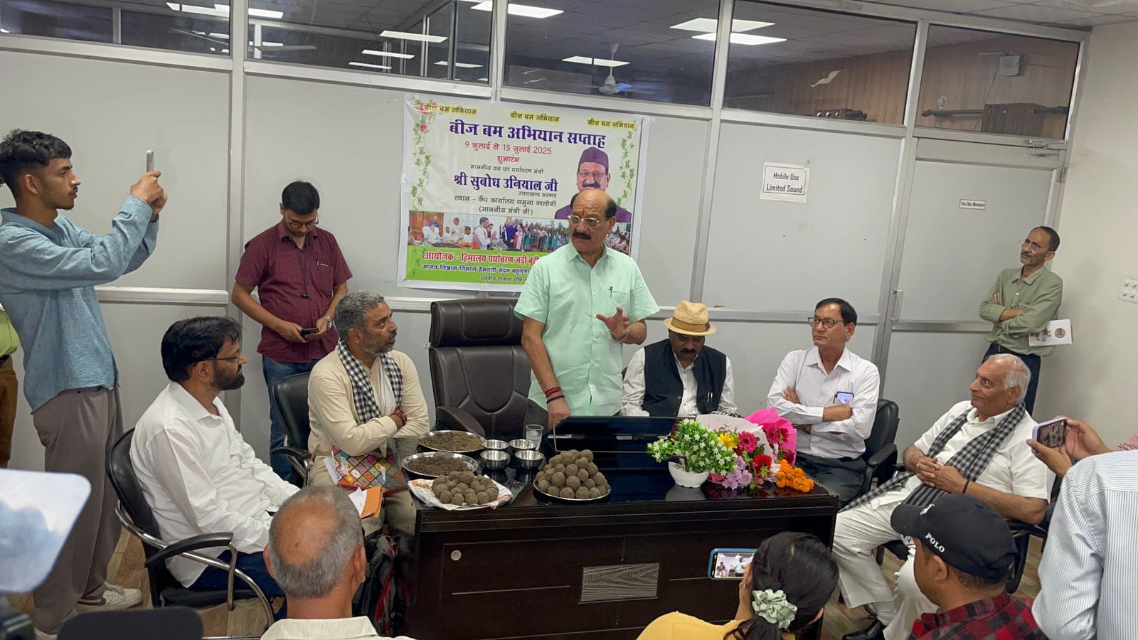 मंत्री जी ने विभाग को बीज बम के प्रति जागरूकता पर भी जोर दिया, प्रकृति में सन्तुलन बनाए रखने के लिए लोगों को अपनी आदतों में भी सुधार लाने की आवश्यकता है, इसके संयुक्त रूप से भूमि को सीमेंट से बचाने, जंगलों को आग, अतिक्रमण से बचने के सामूहिक प्रयास किए जाने चाहिए।