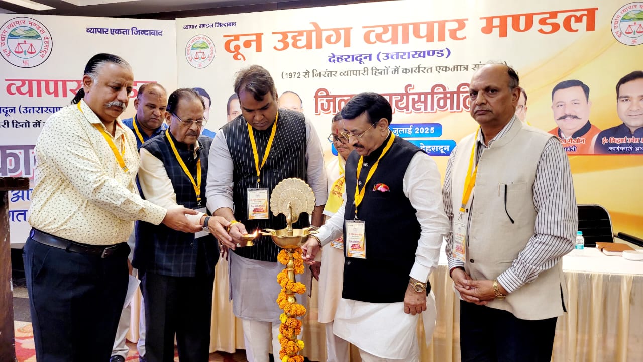 कार्यक्रम में सिद्धार्थ उमेश अग्रवाल के द्वारा सभी प्रतिनिधियों का स्वागत अभिनंदन किया गया और कहा कि महानगर देहरादून में दून उद्योग व्यापार मंडल 1972 से काम करता आ रहा है अगर हम अपनी जीवन में किसी व्यापार की बात करें तो बड़ा सोचने की बात होती लेकिन आज पिछले 53 वर्षों से यानि 5 दशकों से भी अधिक समय से दून उद्योग व्यापार मण्डल निरंतर अपने सिद्धान्तों पर अडिग रहते हुए व्यापारी हितों के लिए कार्य कर रहा है। इस संगठन की आधारशिला उस समय रखी गई जब पूरे देश में इक्का-दुक्का संगठन ऐसे थे जो व्यापारियों की चिंता करते थे। मित्रों, कर विभाग का चपरासी भी अपने को अधिकारी समझता था और मजबूरी में ही सही व्यापारी उसे अपना माय बाप साथियों कहना गलत ना होगा कि अगर हम कहें कि आज अपनी अथक कार्यशैली और समर्पित लक्ष्य साधना के कारण दून उद्योग व्यापार मण्डल को वो स्थान प्राप्त है जो कई पूरे राज्यों के लिए बने संगठनों को भी प्राप्त नहीं है। अग्रवाल नहीं है अभी कहा कि दून उद्योग व्यापार मण्डल के अध्यक्ष समय समय पर कोई भी रहे हों उन्होने कभी भी व्यापारियों के मुद्दों व स्वाभिमान के साथ समझौता नहीं किया। आज दून उद्योग व्यापार मण्डल के तत्वाधान में जिला देहरादून