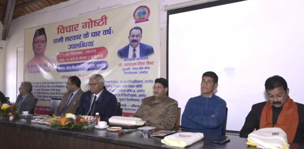 सोबन सिंह जीना विश्वविद्यालय के गणित विभाग के ऑडिटोरियम में आयोजित इस गोष्ठी का उद्देश्य बीते चार वर्षों में राज्य में हुए विकास कार्यों की समीक्षा, जनकल्याणकारी योजनाओं के प्रभाव का आकलन तथा भविष्य की प्राथमिकताओं पर सार्थक विमर्श करना रहा। गोष्ठी में राज्य सरकार की उपलब्धियों और चुनौतियों को लेकर विचार साझा किये गए। वक्ताओं ने कहा कि प्रधानमंत्री नरेंद्र मोदी के मार्गदर्शन में मुख्यमंत्री पुष्कर सिंह धामी केंद्र सरकार से बेहतर समन्वय स्थापित करते हुए राज्य को आगे बढ़ाते हुए नजर आ रहे हैं।