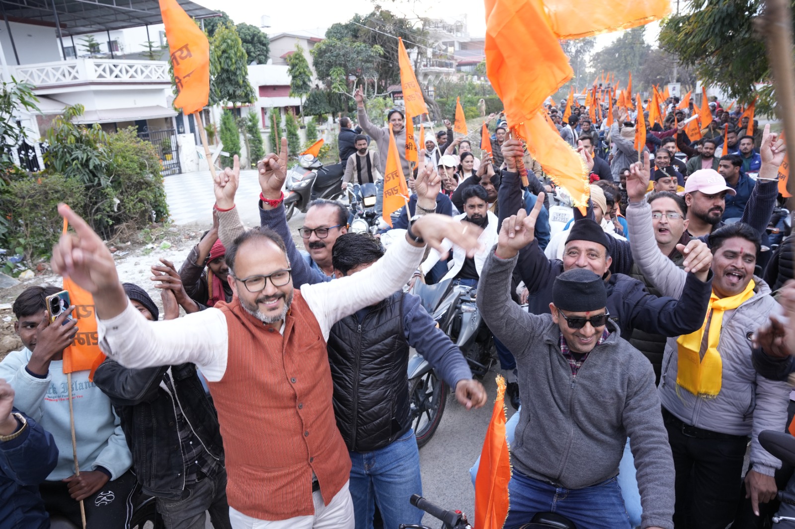देहरादून। वार्ड 39 एवं 40 (इंदिरा नगर एवं सीमाद्वार) के क्षेत्रों में शुक्रवार को उस समय उत्सव जैसा माहौल हो गया जब आगामी 1 फरवरी को होने वाले ‘हिन्दू सम्मेलन’ के उपलक्ष्य में विशाल ‘हिन्दू एकता जागरण यात्रा’ निकाली गई। काली मंदिर से प्रारंभ हुई इस बाइक रैली में सैकड़ों की संख्या में क्षेत्रवासी हाथों में भगवा ध्वज लेकर शामिल हुए।