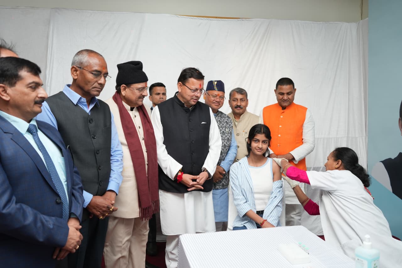 मुख्यमंत्री ने कहा कि सर्वाइकल कैंसर मातृशक्ति के स्वास्थ्य के लिए गंभीर चुनौती बन चुका है। भारत में इस गंभीर बीमारी से वर्ष 2024 में ही 78 हजार से अधिक मामले सामने आए, जिसके कारण 42 हजार से अधिक महिलाओं की दुःखद मृत्यु हुई। यह बीमारी हजारों परिवारों के लिए पीड़ा का कारण बन रही है। इसी गंभीरता को देखते हुए प्रधानमंत्री ने राष्ट्रीय स्तर पर एचपीवी टीकाकरण अभियान प्रारंभ करने का निर्णय लिया, ताकि इस बीमारी की रोकथाम सुनिश्चित की जा सके और आने वाली पीढ़ी को एक सुरक्षित एवं स्वस्थ भविष्य प्रदान किया जा सके। मुख्यमंत्री ने बताया कि राजस्थान के अजमेर से प्रधानमंत्री द्वारा प्रारंभ किए गए इस अभियान के अंतर्गत देशभर में 14 वर्ष की लगभग 1 करोड़ 15 लाख से अधिक किशोरियों को मुफ्त एचपीवी वैक्सीन दी जाएगी। मुख्यमंत्री ने कहा कि उत्तराखंड राज्य में भी इस अभियान के प्रथम चरण में 155 केंद्रों पर व्यापक स्तर पर टीकाकरण की व्यवस्था सुनिश्चित की गई है। इस अभियान की सफलता के लिए डॉक्टरों, नर्सों, एएनएम, आशा और आंगनवाड़ी कार्यकर्ताओं को प्रशिक्षित किया गया है ताकि कोल्ड-चेन व्यवस्था मजबूत हो।